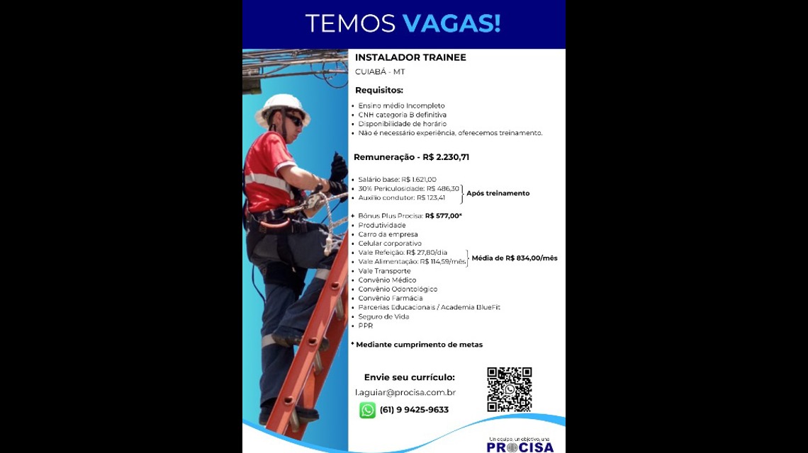 Não é necessário possuir experiência na área, fornecemos treinamento;
